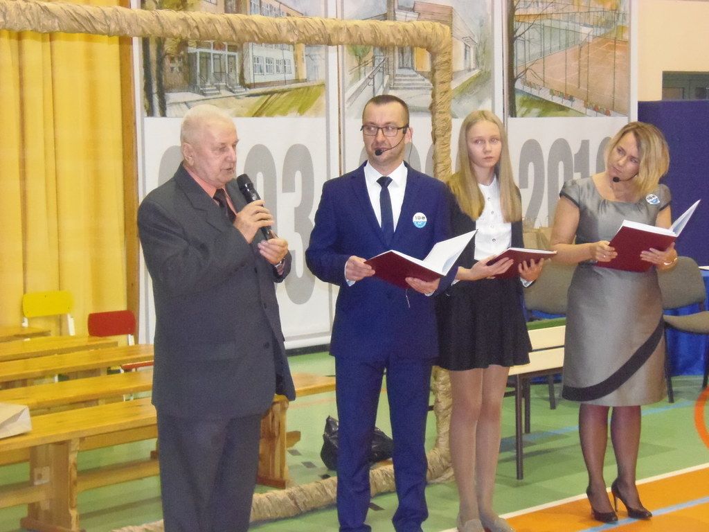 Na początku uroczystości Pani Anna Stoparczyk - dyrektor Zespołu Szkoły Podstawowej i Przedszkola im. Jana Pawła II w Czechach powitała zaproszonych Gości. W swoim przemówieniu dziękowała wszystkim zasłużonym w rozwój szkoły na przestrzeni stu lat. Podkreśliła ogromne zaangażowanie władz Gminy Zduńska Wola z Panem Henrykiem Staniucha na czele. Nie zapomniała o członkach trzech Społecznych Komitetów Budowy: szkoły podstawowej, sali gimnastycznej i gimnazjum. Podczas swojej wypowiedzi powróciła do wzruszających fragmentów kroniki z roku 1923 i 1946. Wtedy w oczach wielu zgromadzonych pojawiły się łzy.