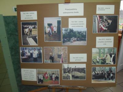 Na korytarzu szkolnym przygotowano wystawę starych zeszytów uczniowskich, podręczników, świadectw szkolnych, zdjęć i innych pamiątek dostarczonych nam przez mieszkańców Czechów i okolic.