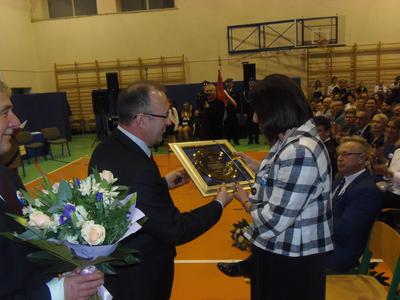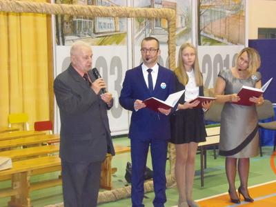 Na uroczystość przybyli znamienici goście: pan Henryk Staniucha - Wójt Gminy Zduńska Wola, pan Wojciech Rychlik - Starosta Zduńskowolski, pani Maria Adamiak - była Wójt Gminy Zduńska Wola, pan Janusz Sakiewa - przewodniczący Rady Gminy Zduńska Wola wraz z Radnymi, ksiądz kanonik Janusz Gozdalik, pan Antoni Wujda - zastępca Wójta gminy Zduńska Wola, pani Ewa Padzik - Sekretarz Gminy Zduńska Wola, pan Witold Oleszczyk- Wójt Gminy Zapolice, pani Wanda Szkilnik - synowa nieżyjących już dyrektora i nauczycielki -państwa Szkilników i wielu innych Gości. Szczególnie ucieszyło nas przybycie na rocznicę emerytowanych nauczycieli i pracowników obsługi naszej placówki na czele z byłym dyrektorem szkoły panem Stanisławem Mielczarkiem. Swoją obecnością zaszczycili nas również dyrektorzy szkół zarówno z terenu gminy Zduńska Wola, szkół powiatu, jak i szkół miejskich. Jesteśmy dumni z faktu, że jubileusz stał się okazją do powitania w progach naszej szkoły licznie zgromadzonych mieszkańców, rodziców uczniów oraz absolwentów. Ci ostatni przedstawili piękny koncert przygotowany specjalnie na tę okazję. Zgromadzona publiczność miała przyjemność wysłuchać utworów w wykonaniu pana Piotra Maciejewskiego z akompaniamentem pani Ismeny Jakubowskiej, pana Wiesława Rychlika, zespołu pana Andrzeja Strzeszewskiego, Natalii Wojtasik, której towarzyszyła skrzypaczka Dominika Gocek czy też Julii Owczarek.