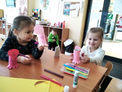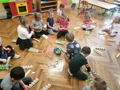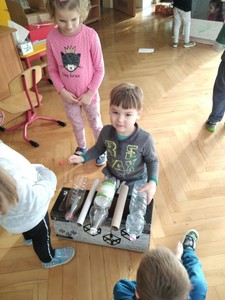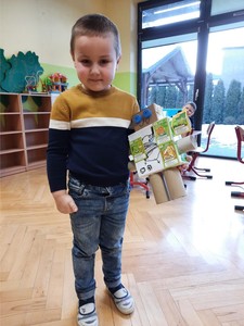 Gdy z przedszkola znikają wszystkie zabawki, to znak, że wydarzy się coś kreatywnego. Tak było i tym razem. W naszym przedszkolu w dniach 18-22.01 trwał tydzień EKO – zabawek. Dzieci przynosiły do przedszkola wszystko, co można było wykorzystać do działań twórczych, pojawiły się między innymi pudełka kartonowe, resztki materiałów, nakrętki, rolki po papierze toaletowym, duże pudła, opakowania po jajkach, tektury i wiele innych rzeczy, które prędzej czy później trafiłyby do kosza. Dzieci postanowiły dać im drugie życie. Dzięki swojej pomysłowości stworzyły zabawki swoich marzeń. Powstały gąsienice, samochodziki, domki dla lalek, pacynki do zabaw w teatr, gry i wiele, wiele innych ciekawych przedmiotów. Zabawy i zabawki stworzone przez przedszkolaków od podstaw dały im możliwość twórczego wykorzystania swoich umiejętności, rozwoju funkcji manualnych i odkrycia kreatywnych sposobów na spędzanie wolnego czasu. Teraz już z pewnością każdy spojrzy inaczej na pudełko lub kartonik.... zanim trafi on na śmietnik.