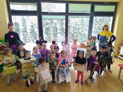 Zakończenie karnawału, to oczywiście Bal, który w tym roku odbył się 9 lutego. Bal niezwykły – bo ekologiczny. Korzystając z doświadczeń naszych partnerów Erasmusowych postanowiliśmy zainspirować rodziców oraz dzieci i zorganizować Bal, jakiego w naszym przedszkolu jeszcze nie było. Zachęciliśmy przedszkolaki, aby zajrzały do szaf swoich rodziców i dziadków, a także w najdalsze zakamarki domu i same stworzyły stroje karnawałowe. Rzeczywistość przerosła nasze oczekiwania, a stroje wykonane w domach na zawsze pozostaną w naszej pamięci. Pomysłowość i zaangażowanie twórcze całych rodzin sprawiło, że bawiliśmy się wprost znakomicie. Zresztą spójrzcie sami :)