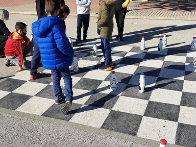 Czwarty dzień spędziliśmy na terenie szkoły C.E.I.P. Radolfo Tomas Samper w El Altet, gdzie odbywały się warsztaty z dziećmi i uczniami. Przedstawiono kilka stacji warsztatowych m.in.: grę w szachy, tworzenie ekologicznych kręgli, sadzenie roślin, rzuty do celu – segregacja śmieci, tworzenie instrumentów, gra w kółko i krzyżyk oraz kolarz z wykorzystaniem nakrętek. Zwróciliśmy szczególną uwagę na nowatorskie metody nauczania matematyki poprzez działania doświadczalne i zespołowe rozwiązywanie problemów oraz kształtowanie myślenia logicznego z wykorzystaniem gry w szachy.
