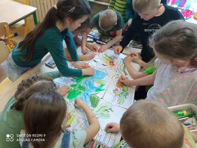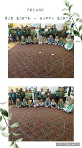 W tym roku przede wszystkim staraliśmy się spędzić ten dzień na działaniach outdorowych. Wyszliśmy z sal, aby “przytulić się” do naszej planety. Posadziliśmy pierwsze rośliny w naszym ogrodzie i zwróciliśmy uwagę na stan środowiska wokół nas. Staraliśmy się również pokazać innym, jak należy dbać o przyrodę i nasze otoczenie. Wiemy, że “Inwestycja w naszą planetę - to inwestycja w naszą przyszłość”.