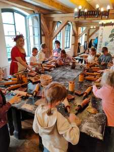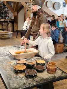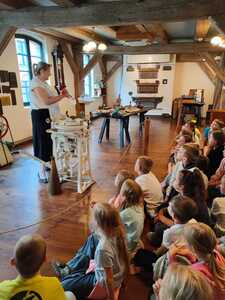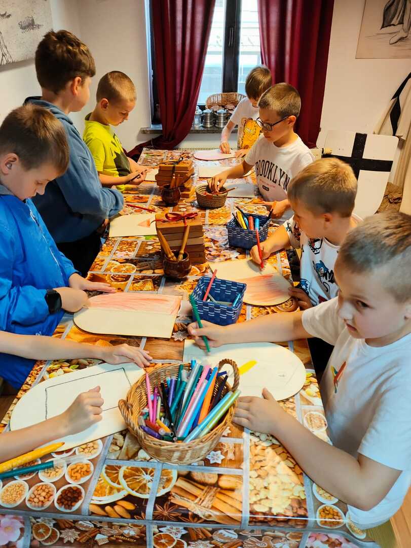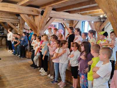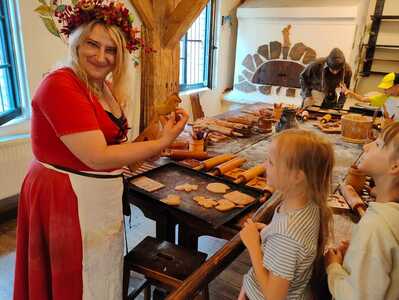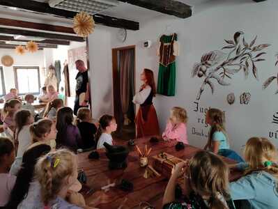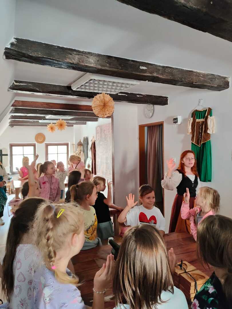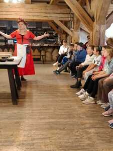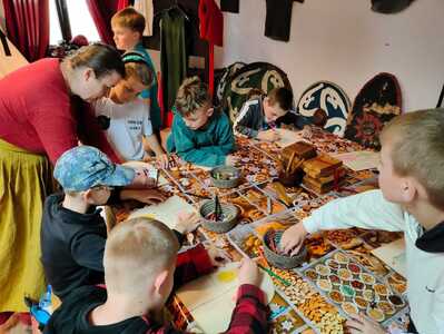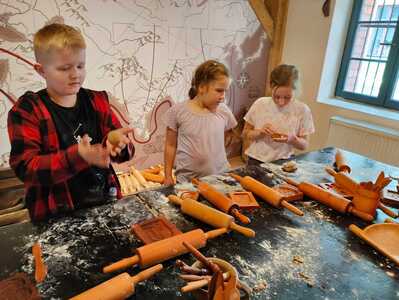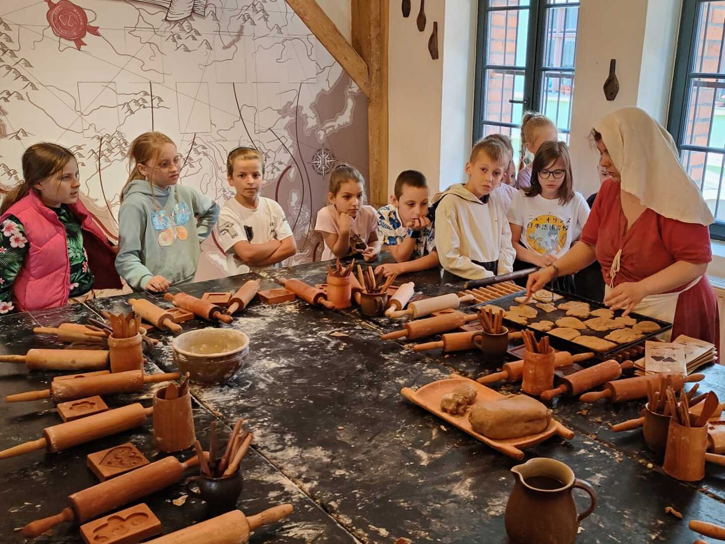 Atrakcją było także zwiedzanie muzeum. Dzięki ekspozycjom znajdującym się w udostępnionych pomieszczeniach zapoznali się z historią toruńskich pierników oraz obejrzeli narzędzia potrzebne do ich produkcji. Podczas seansu w Planetarium udali się w podróż po Układzie Słonecznym, mogli zobaczyć, jak wygląda z bliska powierzchnia Księżyca i Marsa, jak wyglądają pierścienie Saturna oraz chmury na Jowiszu. Przekroczyli również bramy Muzeum Historii Partaczy i ruszyli w podróż do czasów średniowiecza. W trakcie interaktywnych warsztatów aktywnie i czynnie brali udział w pokazach rzemieślniczych, własnoręcznie tworząc sakiewki czy ozdabiając tarcze.