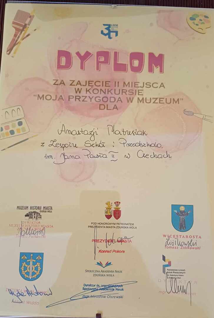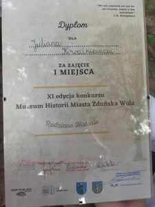 - Anastazja Matusiak uczennica klasy siódmej otrzymała wyróżnienie w kategorii „Rodzinne Historie” oraz zajęła drugie miejsce w kategorii „Moja przygoda w muzeum”.