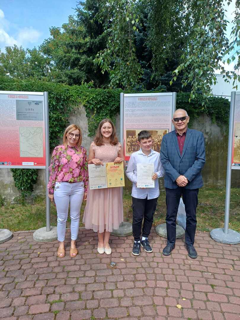 - Julian Kowalkiewicz uczeń klasy szóstej zdobył pierwsze miejsce w kategorii „Rodzinne Historie” oraz otrzymał Specjalną Nagrodę Rodziny Arletów za pracę pt.: „Opowieść o Józefie Bartosie”.