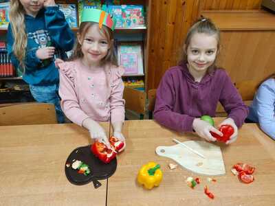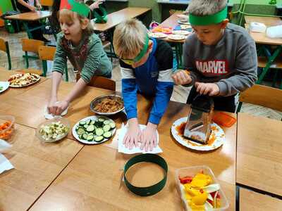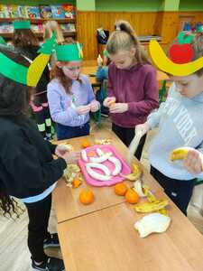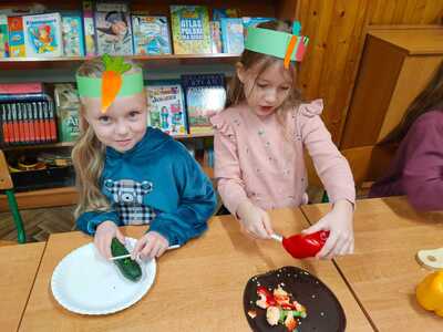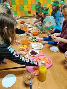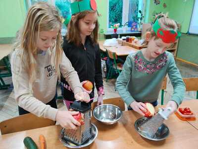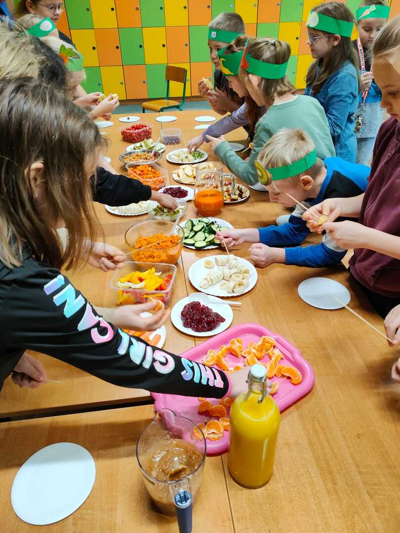 W trakcie przygotowania „kucharze amatorzy” dowiedzieli się, jak ważną rolę odgrywają owoce i warzywa w zdrowym odżywianiu i dlaczego należy spożywać co najmniej 5 porcji dziennie. Był to również czas pracy twórczej. Warzywa i owoce stały się inspiracją do powstania prac plastycznych i plakatów.