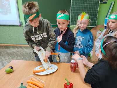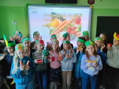 18 października przypada Światowy Dzień Owoców i Warzyw. Święto ma na celu podniesienie świadomości społecznej co do znaczenia spożywania owoców i warzyw dla lepszego zdrowia. W tym dniu w klasie 2b zostały zorganizowane zajęcia pt. „Warzywa i owoce mają supermoce”. Był to czas promocji zdrowych nawyków żywieniowych.