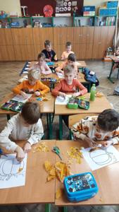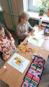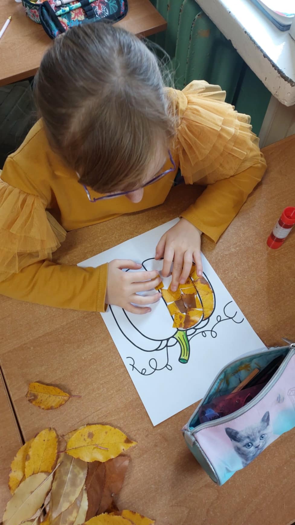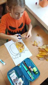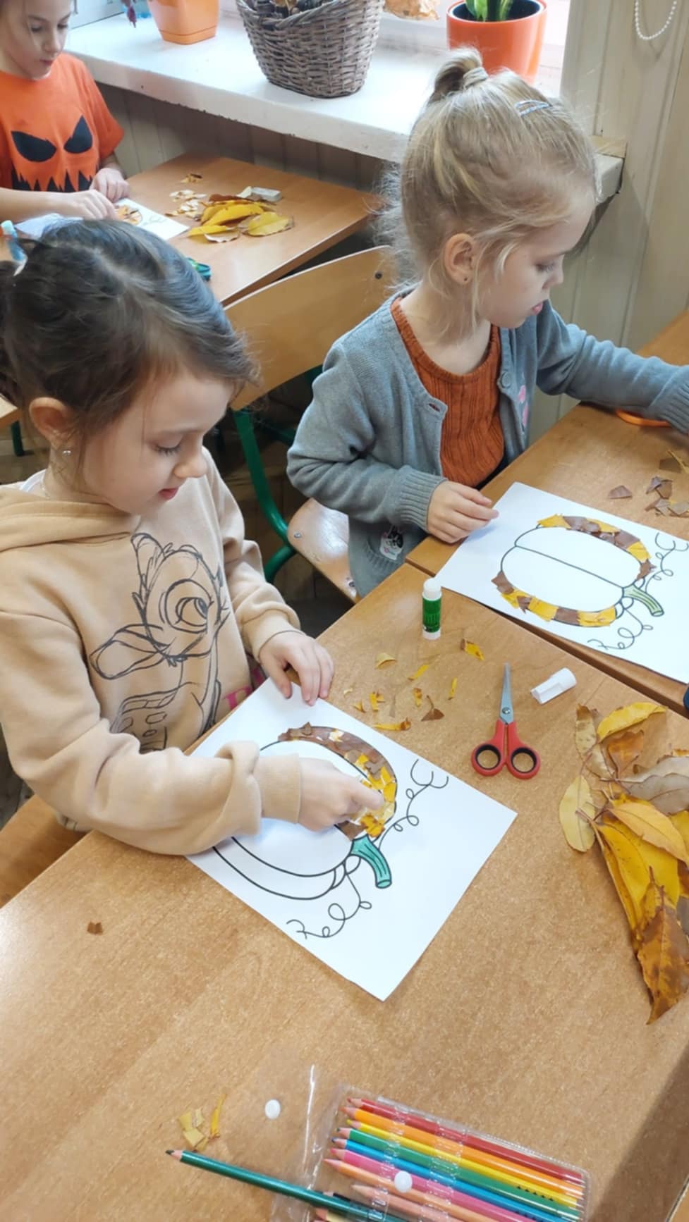 Na zakończenie dzieci stworzyły piękne mozaiki z liści, które nawiązywały do kolorów dyni. Było to wspaniałe połączenie nauki i kreatywności, które z pewnością na długo zostanie w pamięci naszych małych artystów.