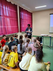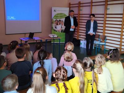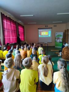 Uczniowie odbyli z pracownikami KRUS-u pouczającą pogadankę na temat bezpieczeństwa podczas prac w gospodarstwie rolnym. Mieli również okazję obejrzeć film edukacyjny „Gra