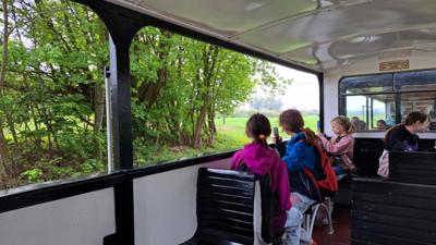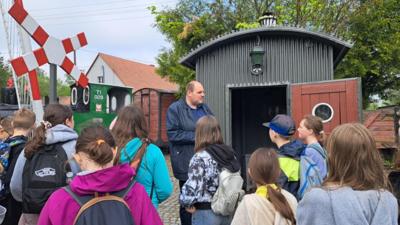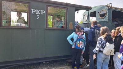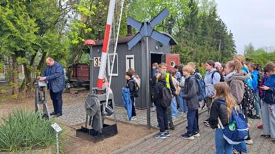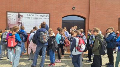 24 kwietnia 2025r. uczniowie klas:4b, 5a, 5b, 6a i 6b pod opieką wychowawców udali się na wycieczkę do Biskupina i Wenecji. Celem wycieczki było poznanie historii kolei wąskotorowej, zwiedzenie zabytkowych parowozów i ruin zamku w Wenecji, przejazd zabytkową kolejką oraz odkrywanie przeszłości w skansenie archeologicznym w Biskupinie – jednym z najważniejszych stanowisk archeologicznych w Polsce. Pierwszym przystankiem na naszej trasie była Wenecja – mała, malownicza miejscowość znana z jednego z najciekawszych muzeów techniki w Polsce. Odwiedziliśmy Muzeum Kolei Wąskotorowej, gdzie mogliśmy z bliska obejrzeć imponującą kolekcję zabytkowych parowozów, wagonów towarowych i pasażerskich, a także drezyn ręcznych i motorowych. Zwiedzając ekspozycje, poznaliśmy historię kolei wąskotorowej o rozstawie torów 600 mm, która odegrała ważną rolę w lokalnym transporcie. Tuż obok muzeum znajdują się ruiny średniowiecznego zamku z XIV wieku, z którym wiąże się legenda o Krwawym Diable Weneckim. Według opowieści, był to okrutny sędzia, który dręczył mieszkańców. Ruiny, choć częściowo zarośnięte, nadal budzą respekt i pobudzają wyobraźnię. To była świetna okazja, by poczuć klimat dawnych wieków i posłuchać fascynujących opowieści przewodnika. Po zwiedzaniu przyszedł czas na wyjątkową atrakcję – przejazd zabytkową kolejką wąskotorową z Wenecji do Biskupina. Choć trasa była krótka, podróż w starym wagonie, przez malownicze pola i lasy, dała nam mnóstwo radości. To prawdziwe doświadczenie podróży z dawnych lat – bez pośpiechu, za to z klimatem!