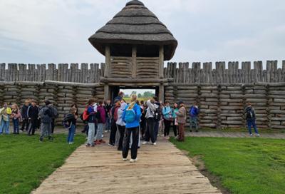 Kolejnym przystankiem był słynny skansen archeologiczny w Biskupinie – jedno z najważniejszych stanowisk archeologicznych w Polsce. Zwiedzając teren dawnej osady, mogliśmy zobaczyć pełnowymiarowe rekonstrukcje wału obronnego, falochronu, bram, ulic i budynków mieszkalnych z czasów kultury łużyckiej. Przewodnik opowiadał o codziennym życiu mieszkańców sprzed ponad 2700 lat – ich zajęciach, budownictwie, handlu i zwyczajach. Spacer po skansenie to jak podróż w czasie – wśród drewnianych domów i odgłosów pracy rzemieślników. Miejsce to robi ogromne wrażenie i pozwala lepiej zrozumieć, jak wyglądało życie naszych przodków.