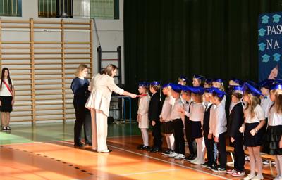 Na zakończenie każdy pierwszak otrzymał pamiątkowy dyplom oraz drobny upominek. W klasach czekał na dzieci słodki poczęstunek przygotowany przez rodziców, który był miłym dopełnieniem tego świątecznego dnia.