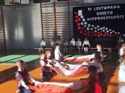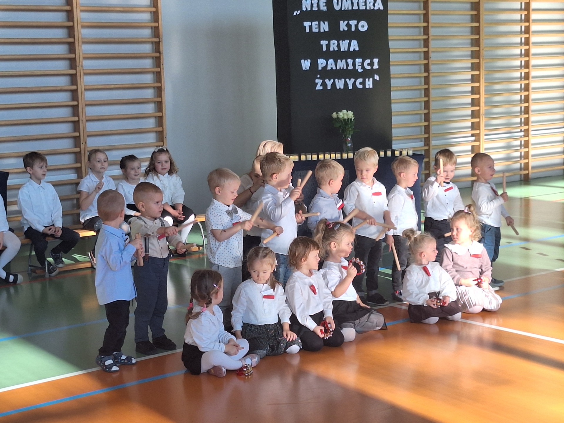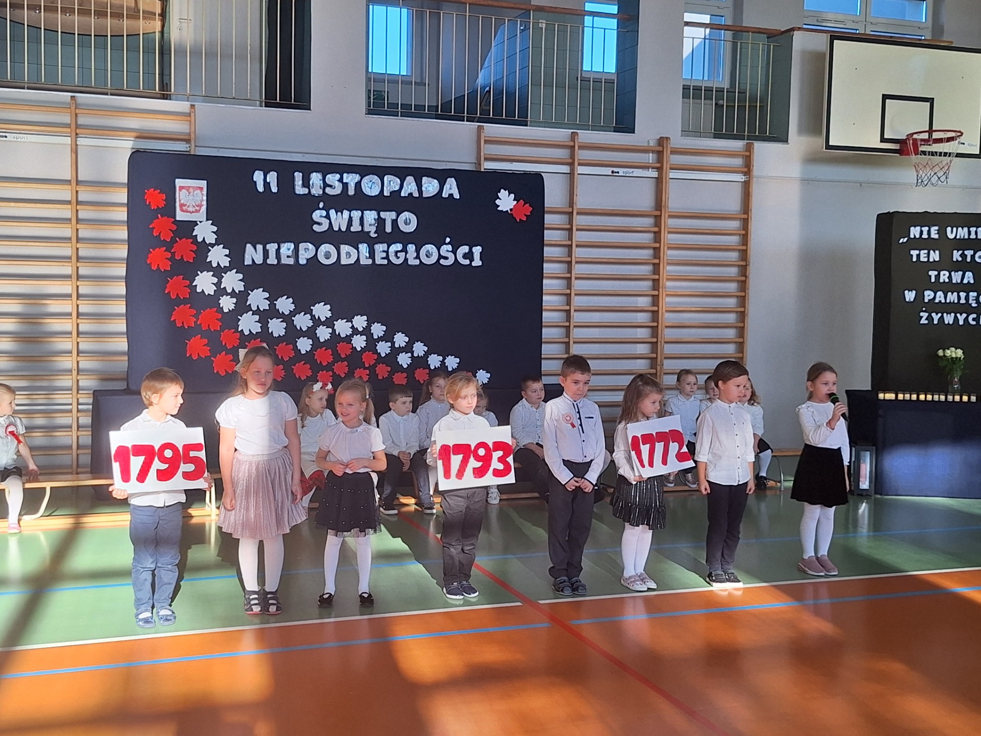 Dzieci przedszkolne przygotowały program artystyczny, który przybliżył historię trudnej drogi Polaków do niepodległości. Na scenie zaprezentowano wiersze, tańce patriotyczne i krótkie scenki, ukazujące dramaturgię rozbiorów Polski . Dzięki temu każdy mógł poczuć atmosferę tamtych czasów, pełną nadziei, wiary i tęsknoty za wolną ojczyzną.