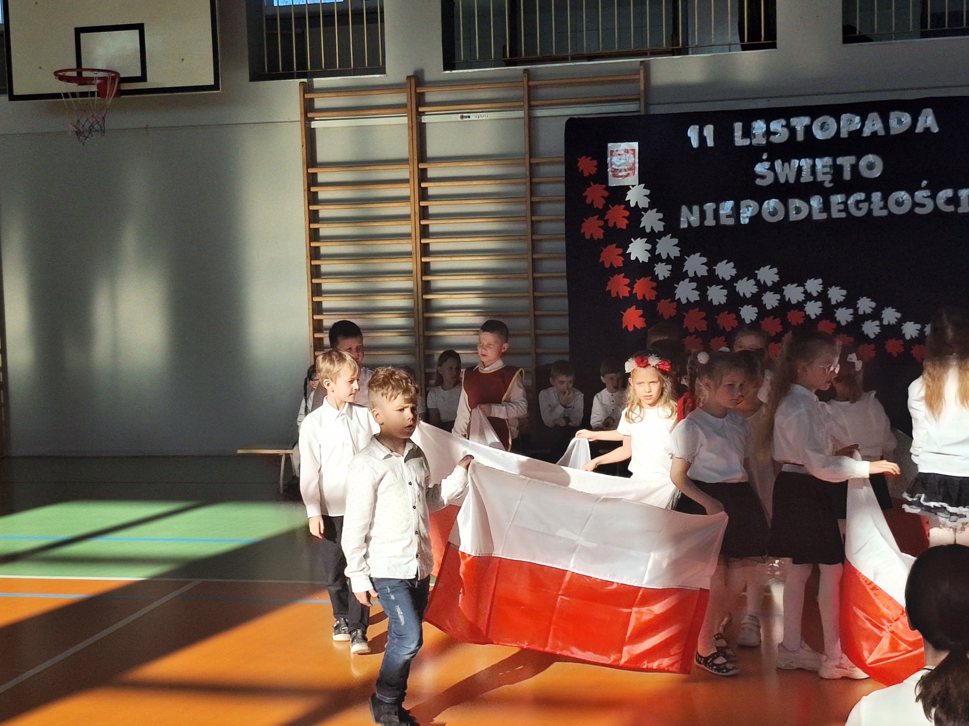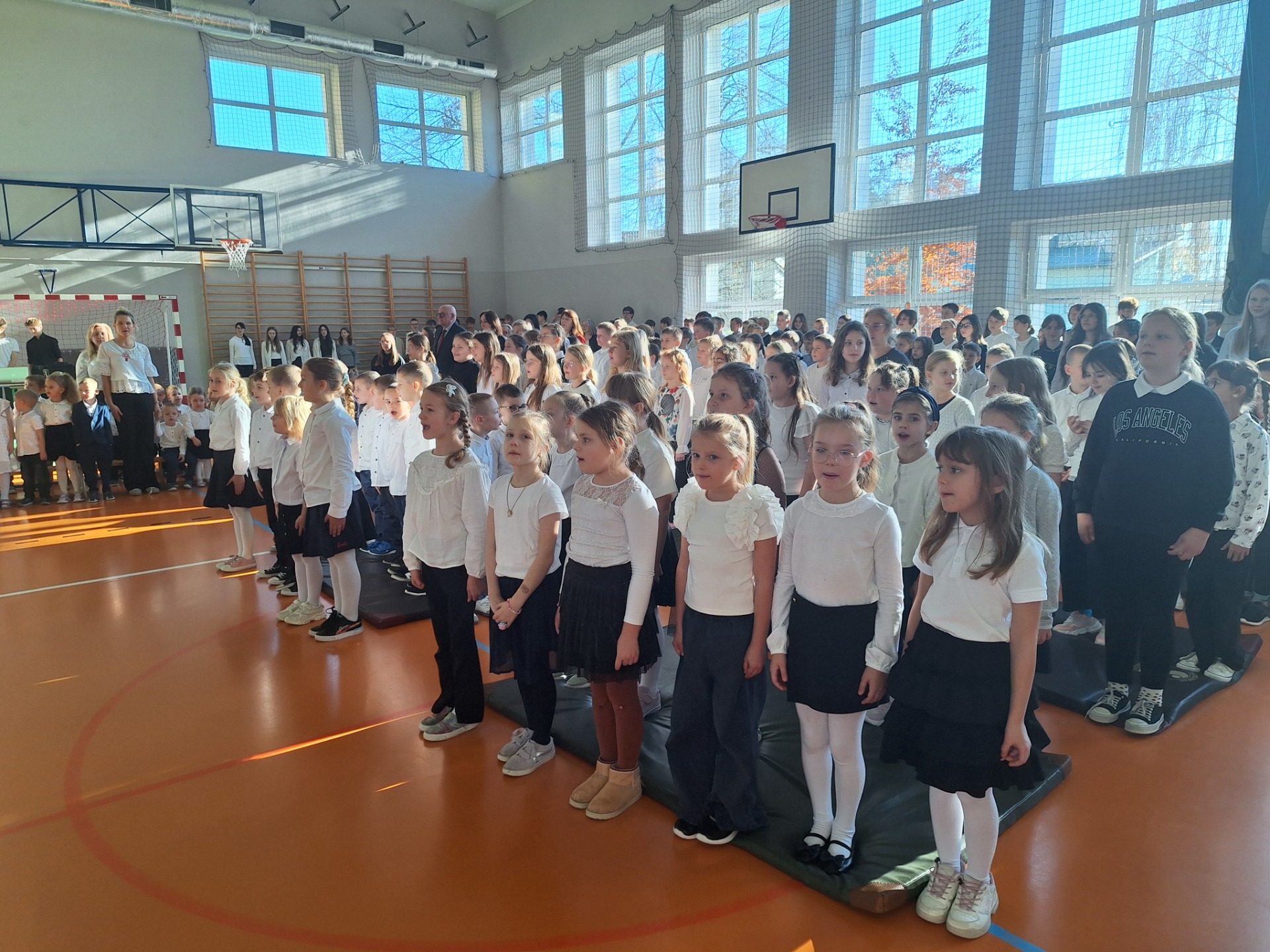 W naszej szkole odbyła się uroczystość upamiętniająca to ważne wydarzenie. Cała społeczność szkolna i przedszkolna, na czele z panią dyrektor Anną Stoparczyk, świętowała 107 rocznicę odzyskania niepodległości przez Polskę.