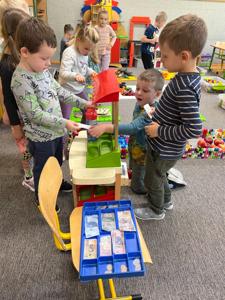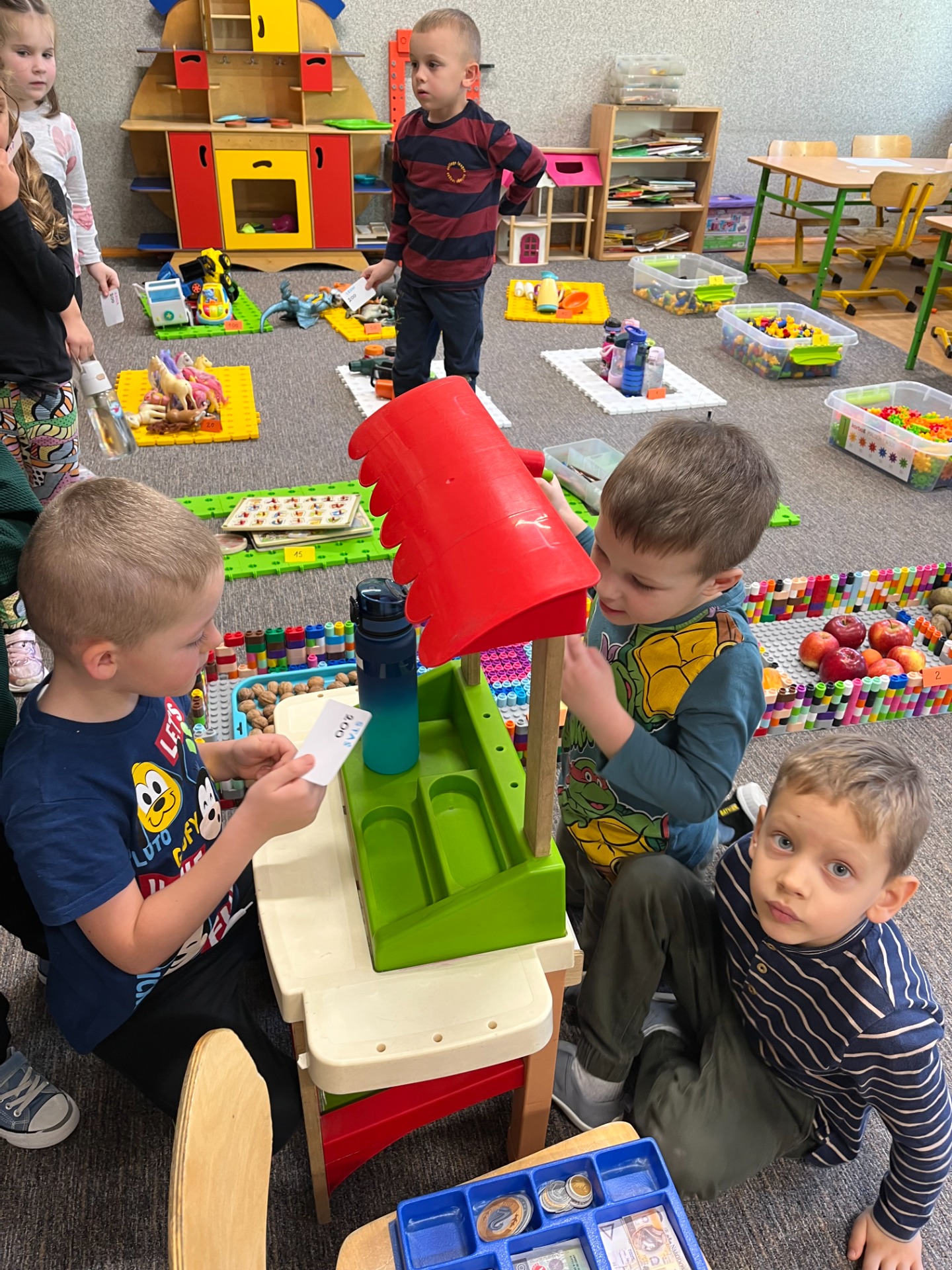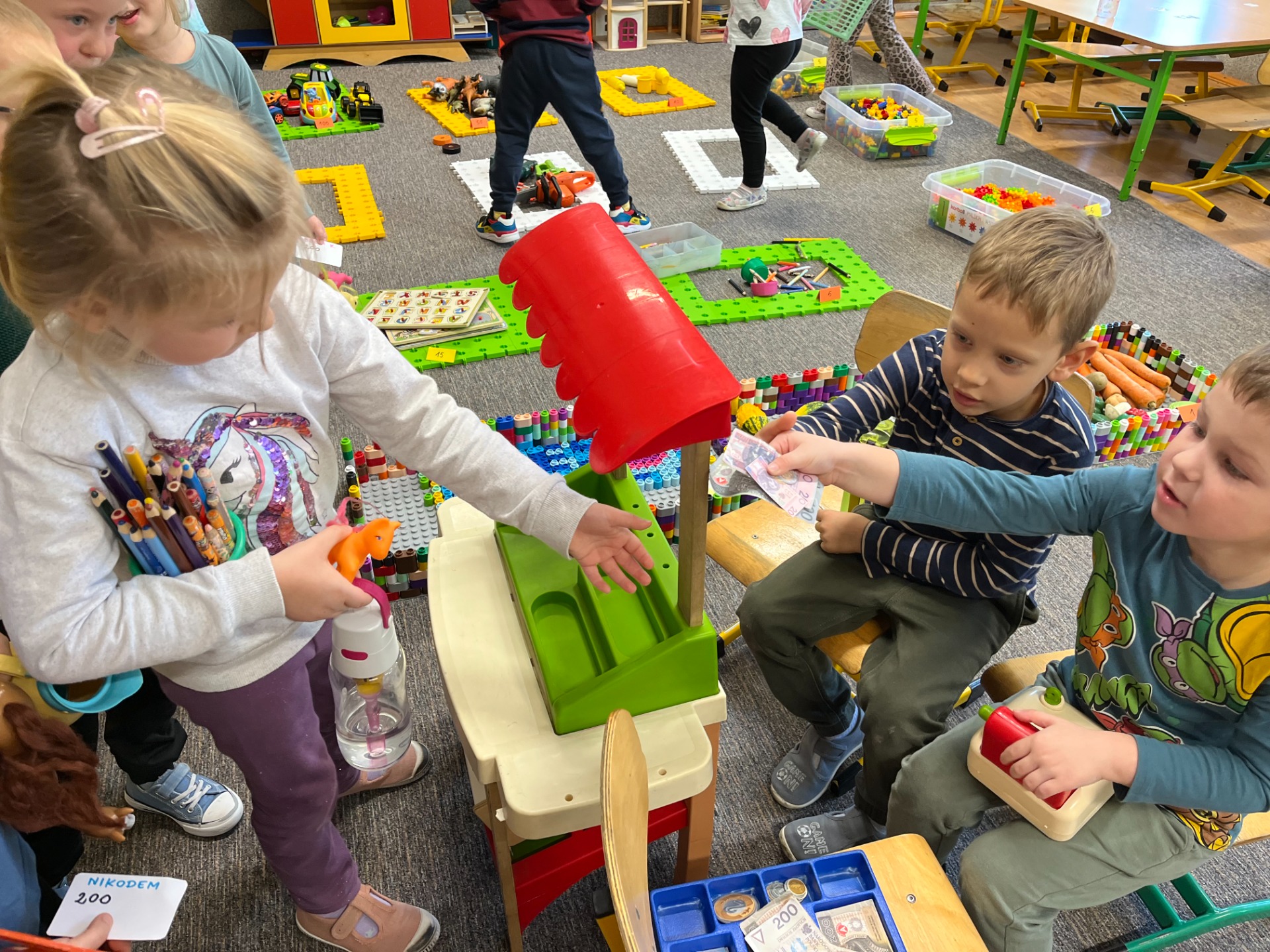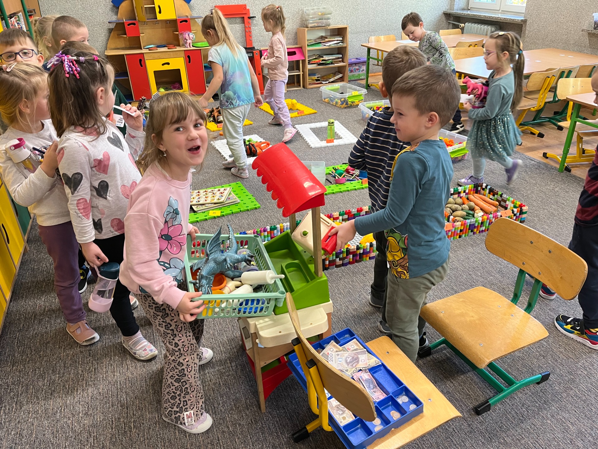 Zabawa w sklep w przedszkolu, to nie tylko zabawa dla wypełnienia czasu. To przede wszystkim nauka wielu ważnych kompetencji. 5-latki szacowały wartość produktów ustalając ich cenę, dowiedziały się, skąd wzięły się pieniądze, gdzie one są przechowywane i że płacić można również kartą. Uczyły się rozróżniać potrzeby od zachcianek. W praktycznym działaniu pokazały, że woda i produkty żywnościowe są niezbędne do przeżycia i zdrowego funkcjonowania, i to właśnie je wybierały w pierwszej kolejności w swoich zakupach. Musiały oszczędnie gospodarować otrzymaną kwotą. Mając do dyspozycji karty PKO JUNIOR lub gotówkę, w większości wybierały pierwszą opcję. To była prawdziwa lekcja gospodarności i oszczędzania.