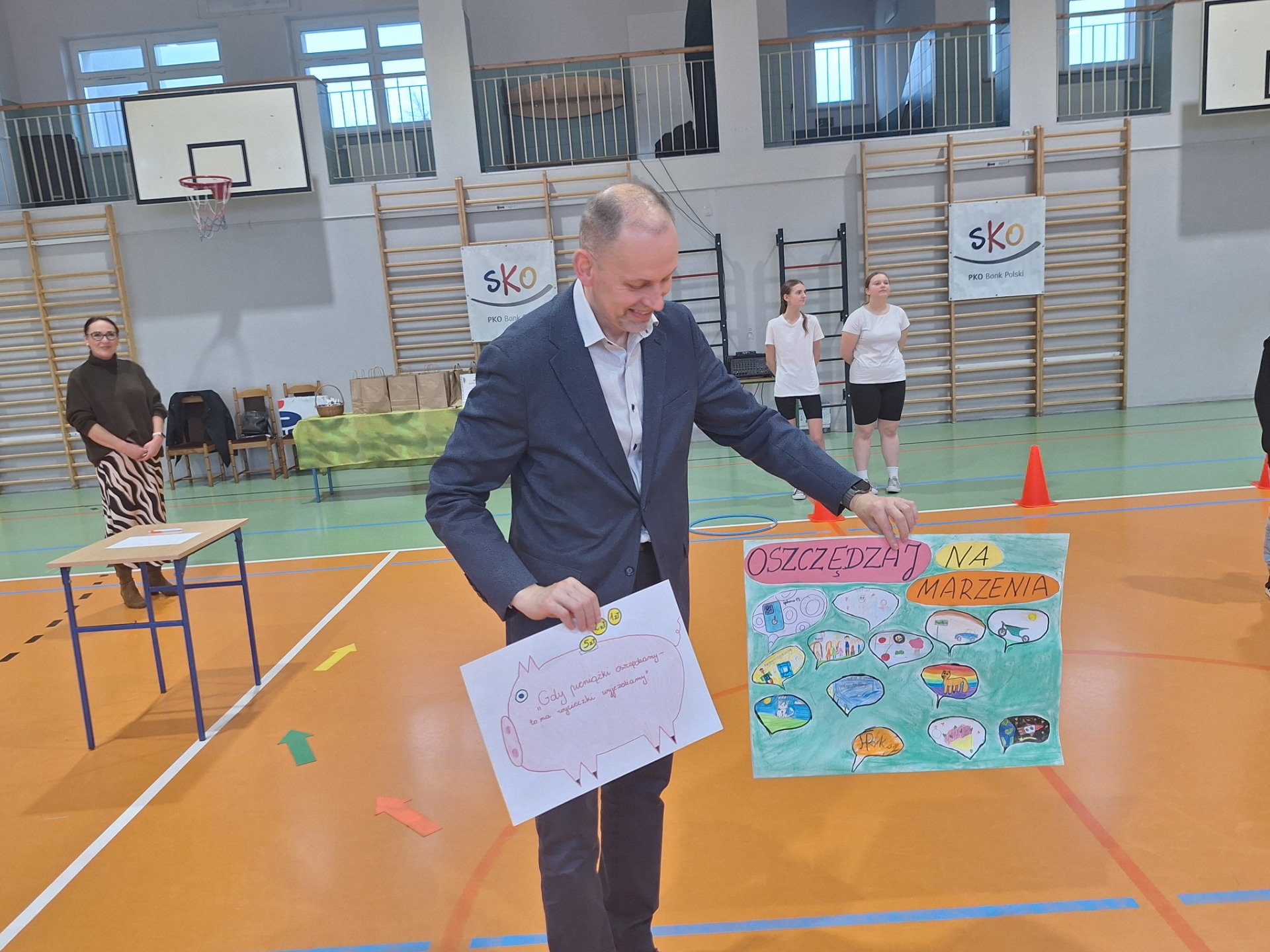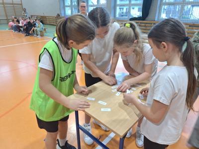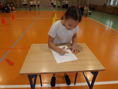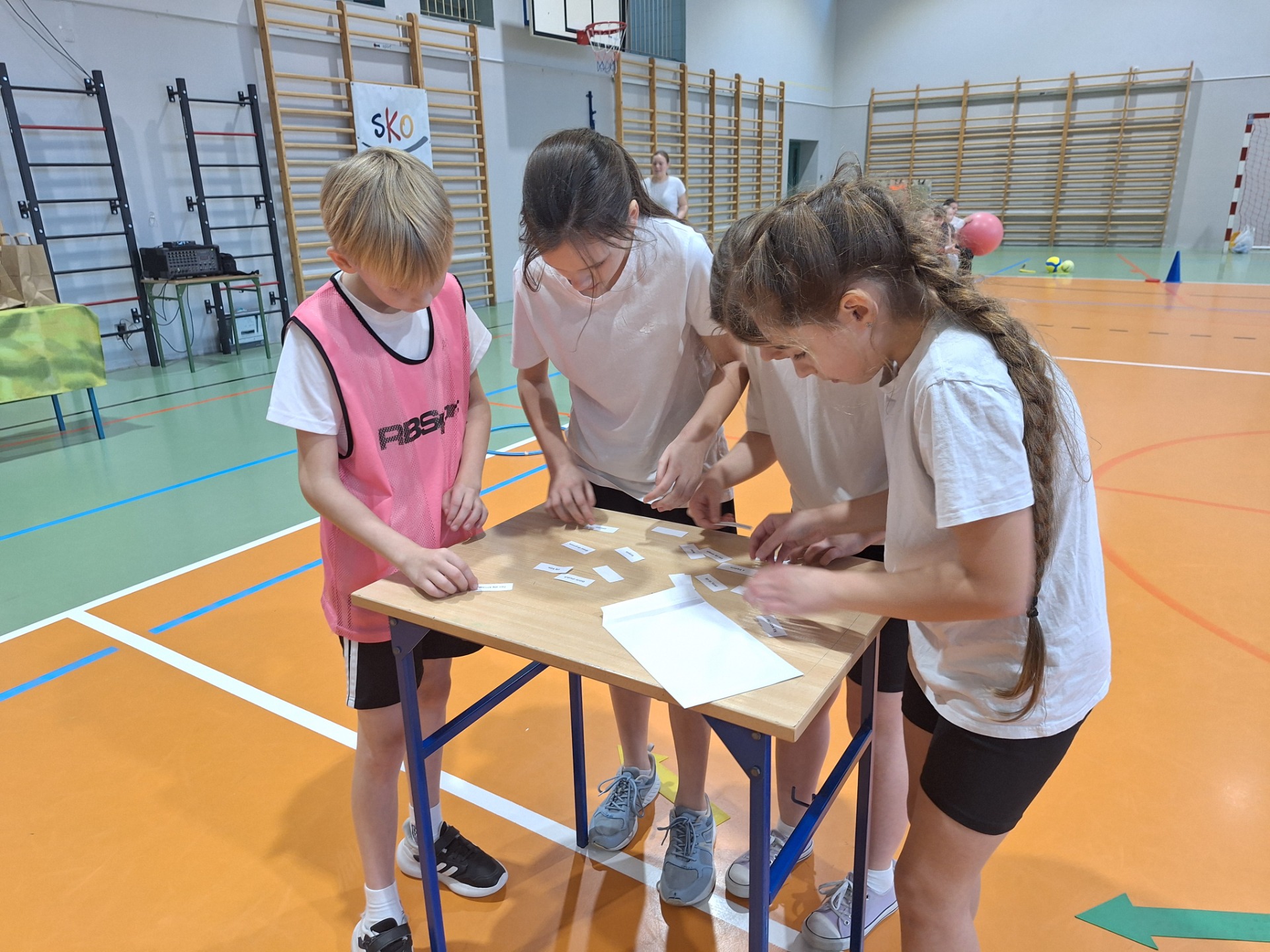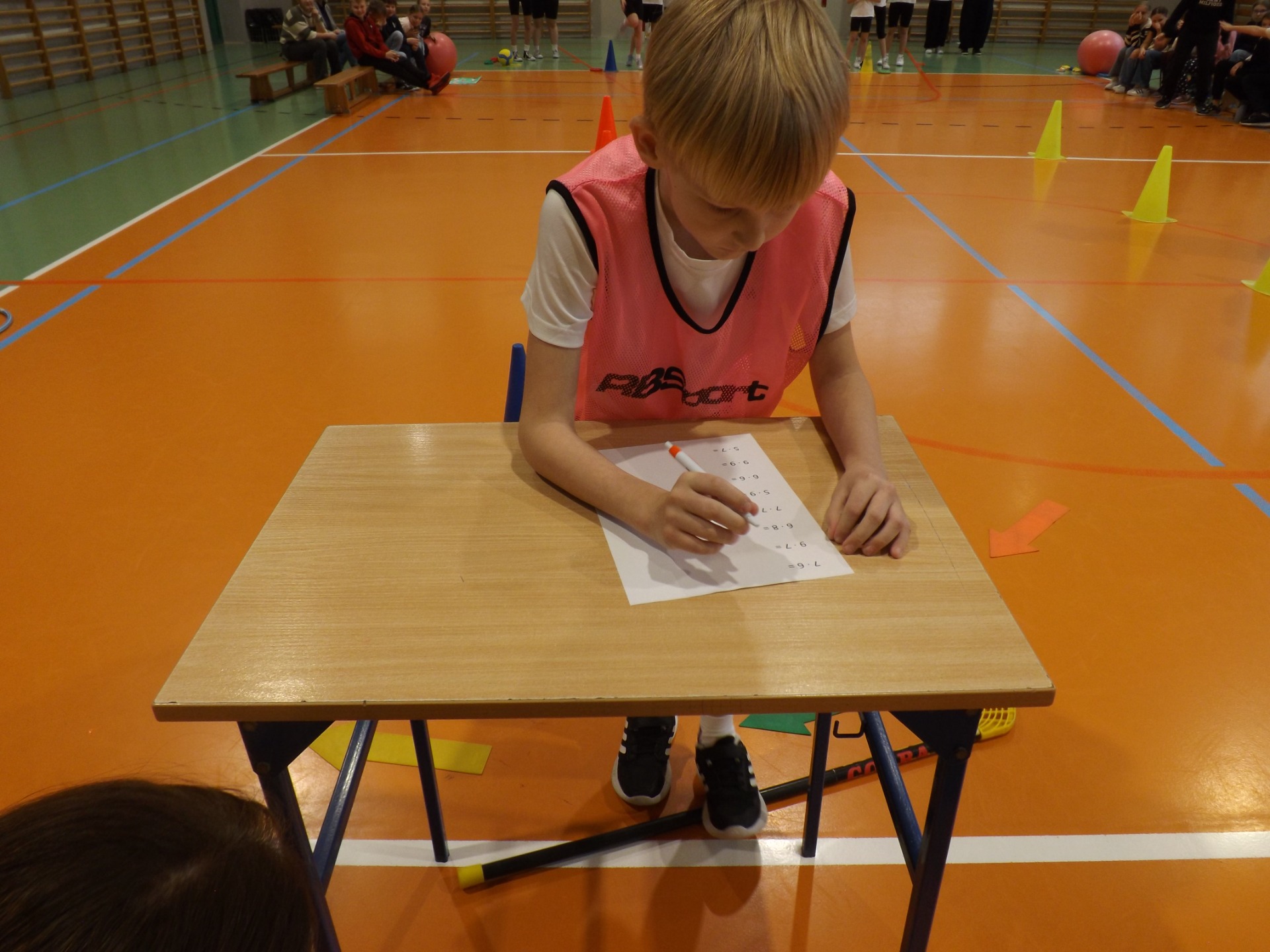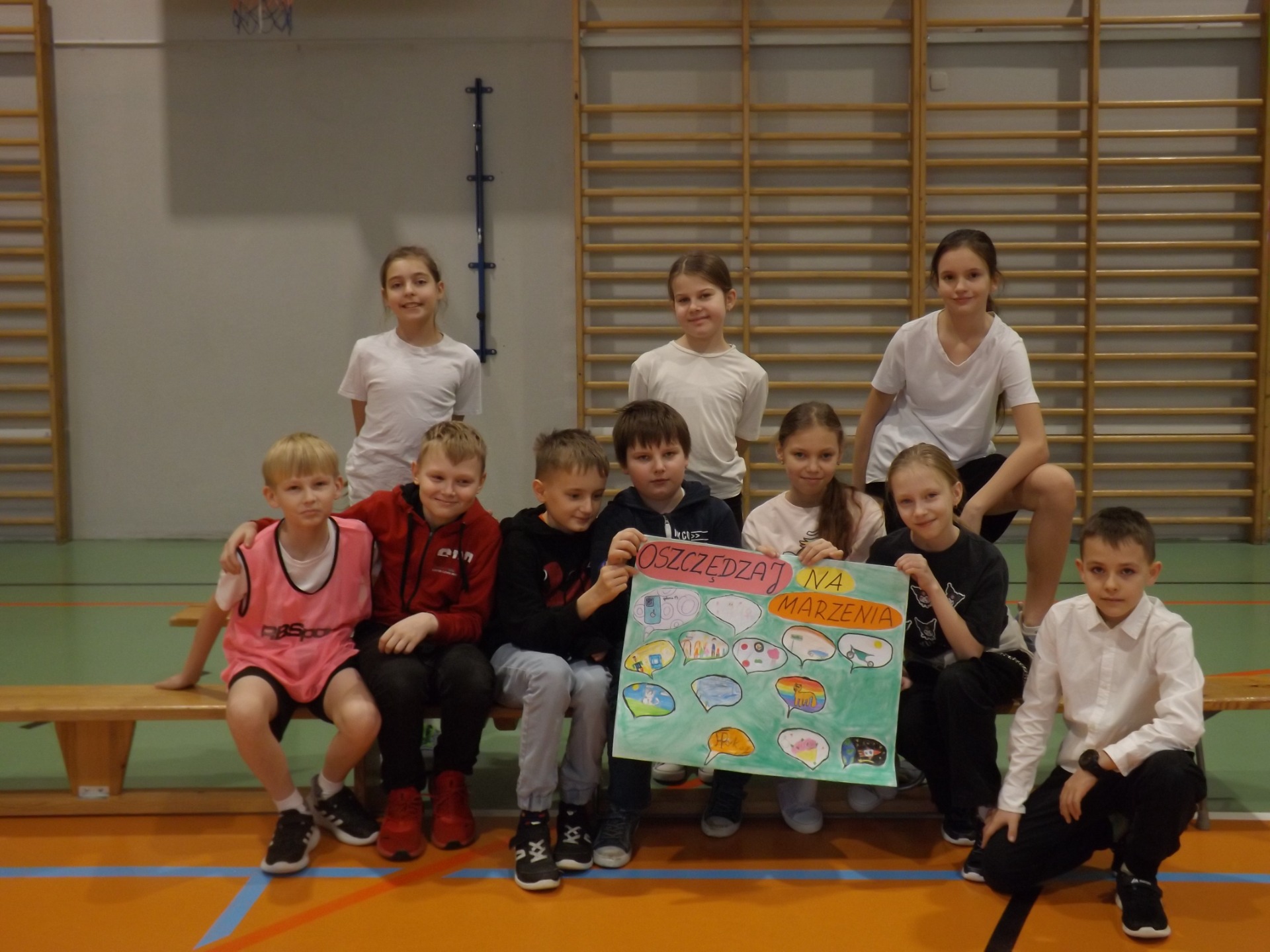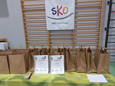 Następnie czwartoklasiści rywalizowali w części sportowej połączonej z wiedzą matematyczną. Ponadto każda z klas musiała przygotować i zaprezentować hasło promujące SKO oraz plakat dotyczący oszczędzania. Po emocjonującej i zaciętej walce komisja konkursowa pierwsze miejsce przyznała obu klasom, czyli 4a i 4b. Każda z drużyn została nagrodzona dyplomem i nagrodami ufundowanymi przez SKO, a kibice otrzymali słodycze i ołówki SKO.