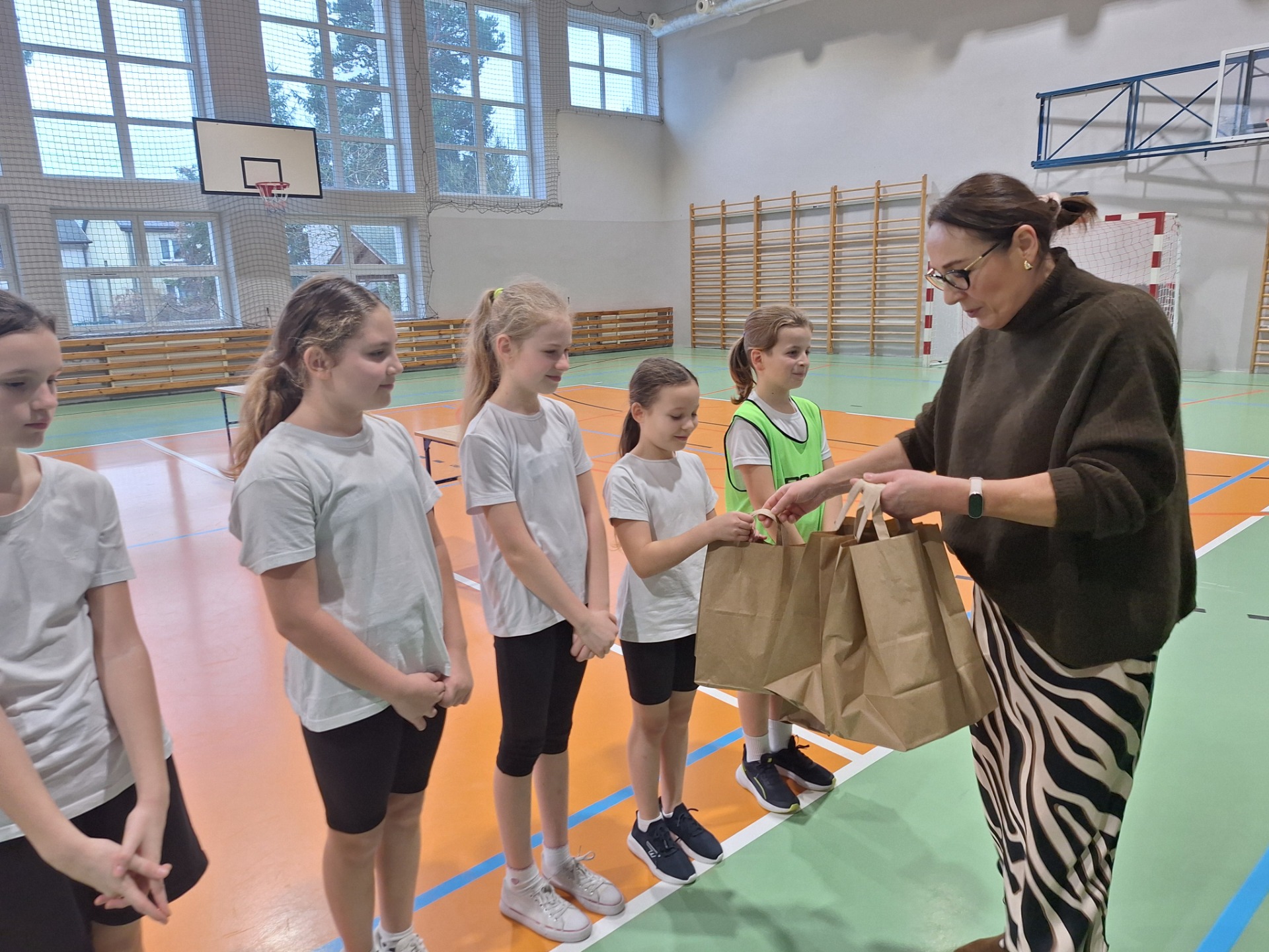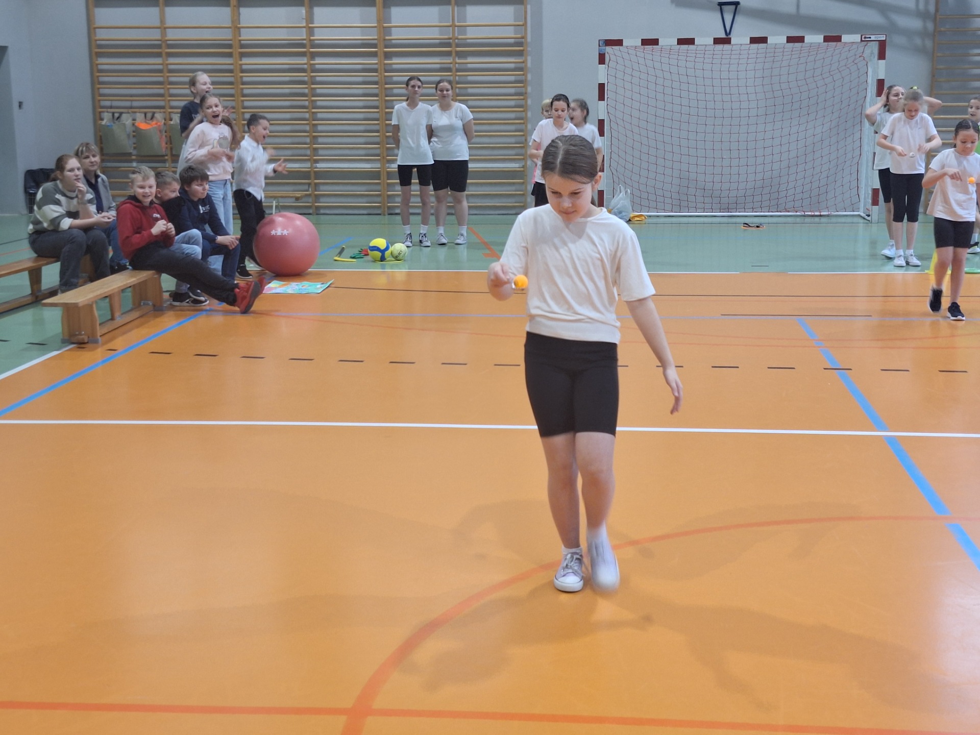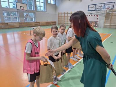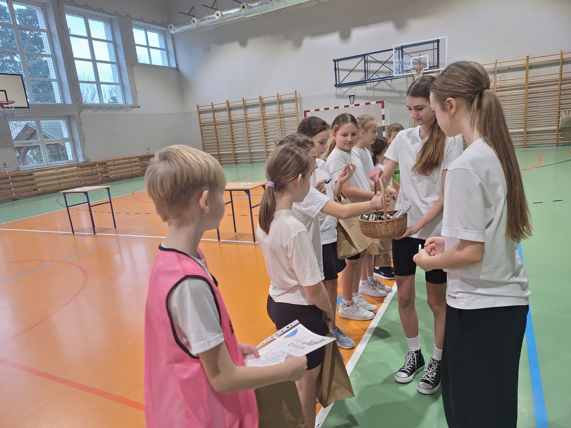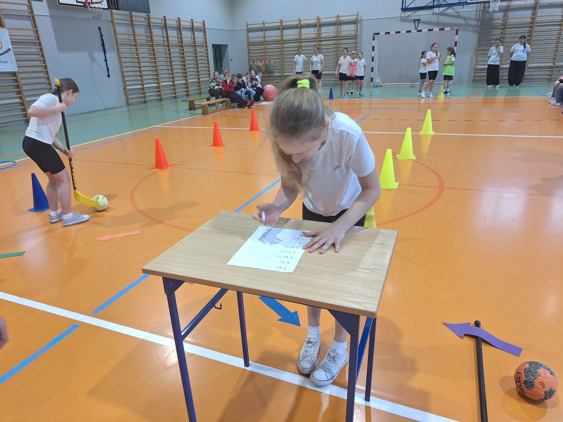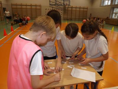 Następnie czwartoklasiści rywalizowali w części sportowej połączonej z wiedzą matematyczną. Ponadto każda z klas musiała przygotować i zaprezentować hasło promujące SKO oraz plakat dotyczący oszczędzania. Po emocjonującej i zaciętej walce komisja konkursowa pierwsze miejsce przyznała obu klasom, czyli 4a i 4b. Każda z drużyn została nagrodzona dyplomem i nagrodami ufundowanymi przez SKO, a kibice otrzymali słodycze i ołówki SKO.