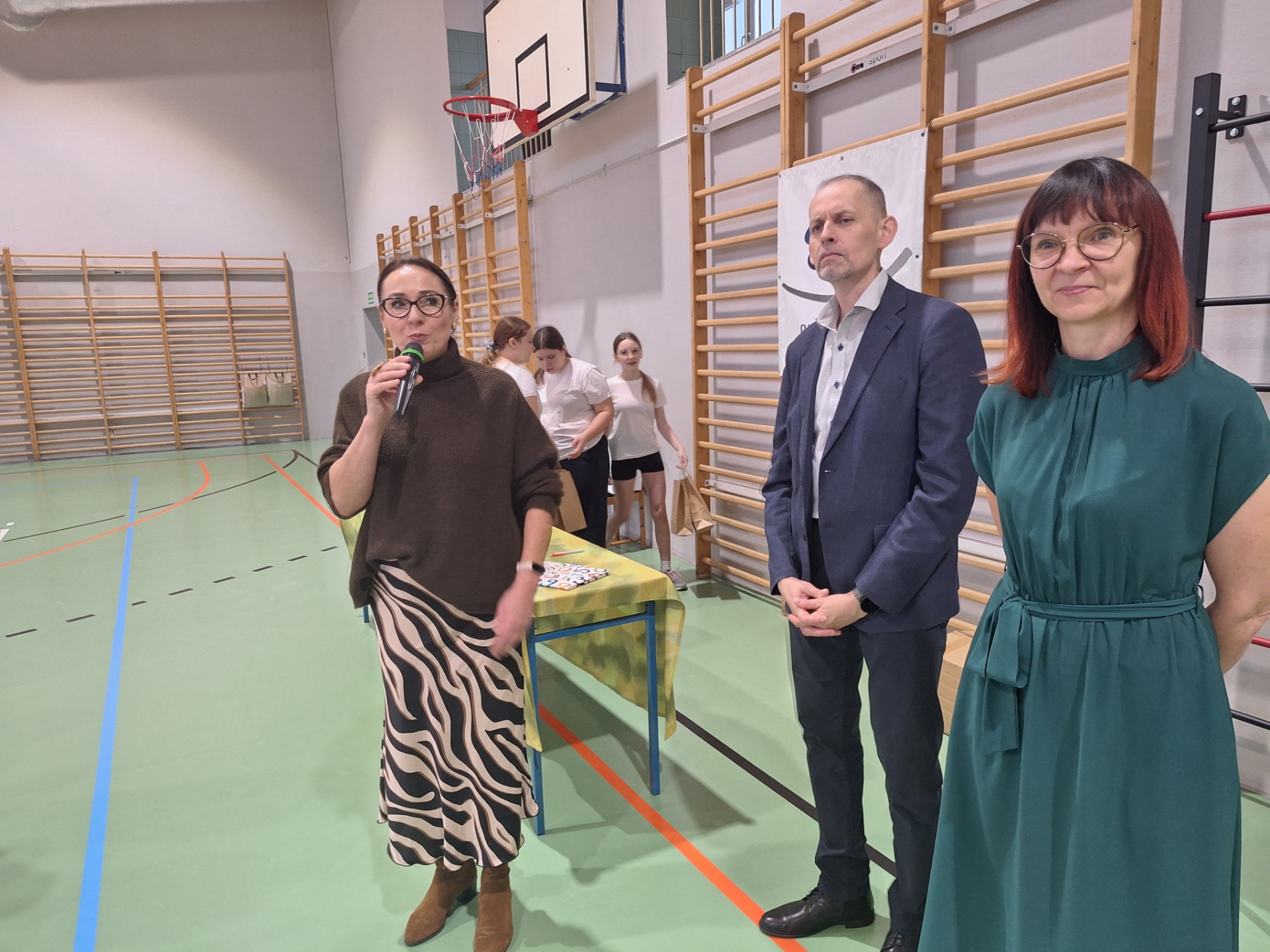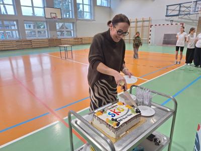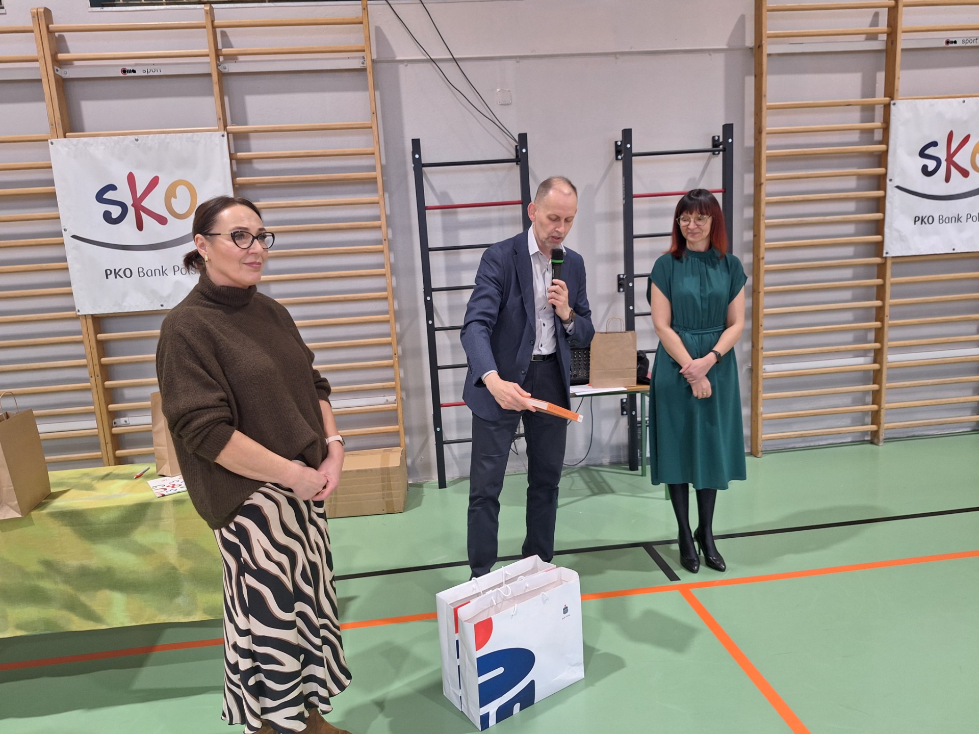 W głównej części urodzinowych obchodów wzięli udział: p. Anna Stoparczyk – dyrektor szkoły i p. Tomasz Buda – dyrektor Banku PKO BP w Zduńskiej Woli.