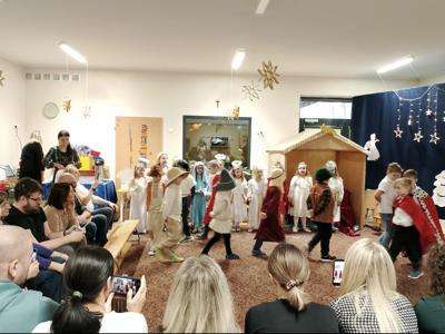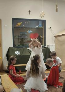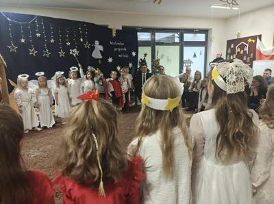 Zaproszenie goście mogli podziwiać dzieci w różnych rolach. Przedszkolaki odwiedził również św. Mikołaj