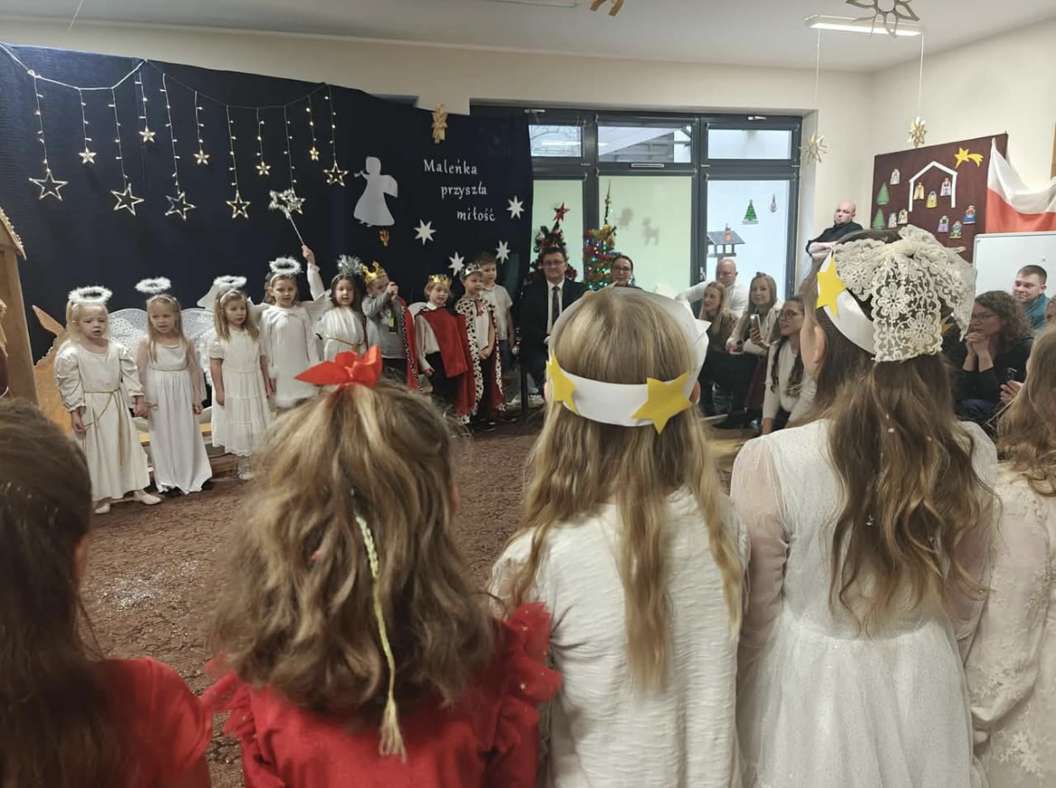 Po pięknym występie jasełkowym głos zabrał Pan Antoni Wujda. Podziękował dzieciom za występ oraz za ich zaangażowanie, a nauczycielom i rodzicom pogratulował przygotowania tej niezwykłej uroczystości. Całej społeczności przedszkolnej złożył świąteczne życzenia Bożonarodzeniowe.